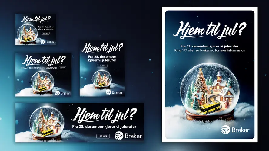 I samarbeid med Nucleus utviklet vi to julekampanjer for Brakar. Den ene kampanjen skulle informere de reisende om årets juleruter, mens den andre var en adventskalender der vi også bistod med postetekster og budskap/tematikk til konkurransen hver søndag. Vi utviklet et unikt juleunivers med illustrasjoner og animasjoner hvor de gule Brakar-bussene spilte en sentral rolle.